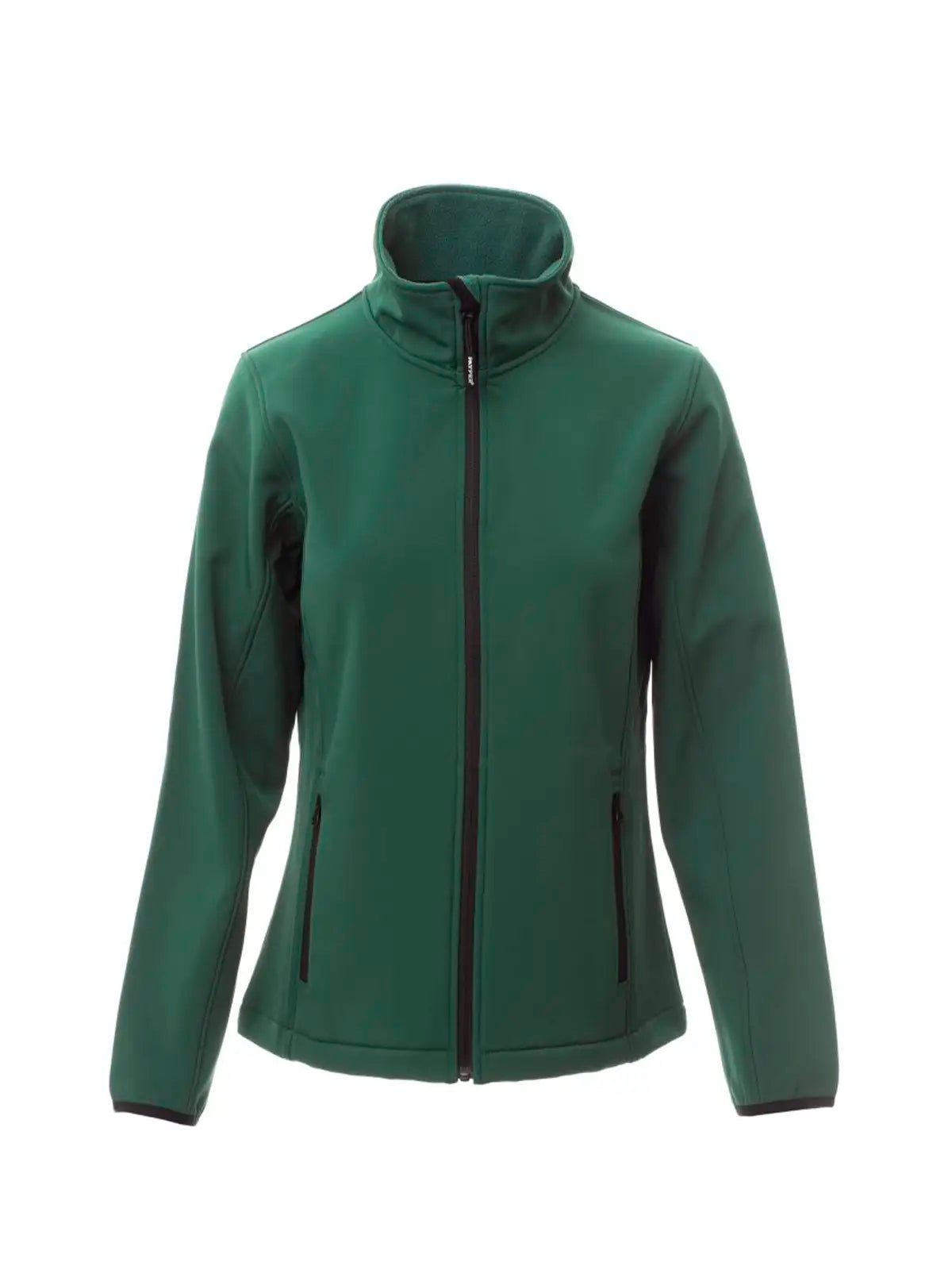 Soft-shell de dos capas, de mujer, con tratamiento repelente al agua, manga montada y cierre de cremallera SBS con cinta.